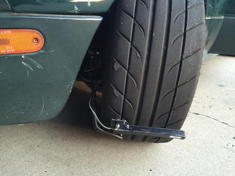 Tire temp brackets were a headache. This will do for now. I need to shift the sensors over an inch to the left still. Hopefully i don't hit any curbs.