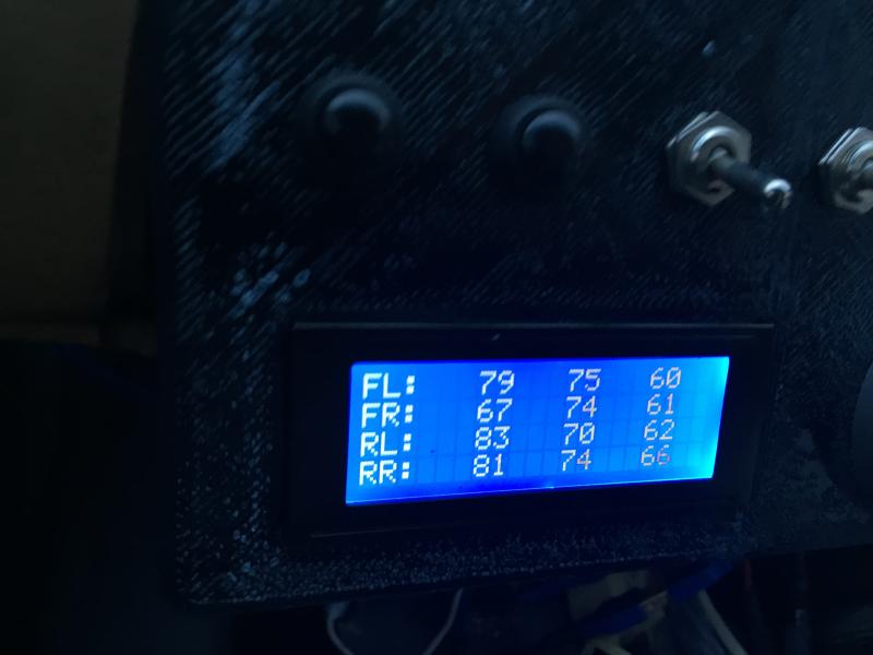 Tire temp testing a sucess! I'm working on the next revision with waterproof enclosures and CAN integration with my new RaceCapture Pro 2