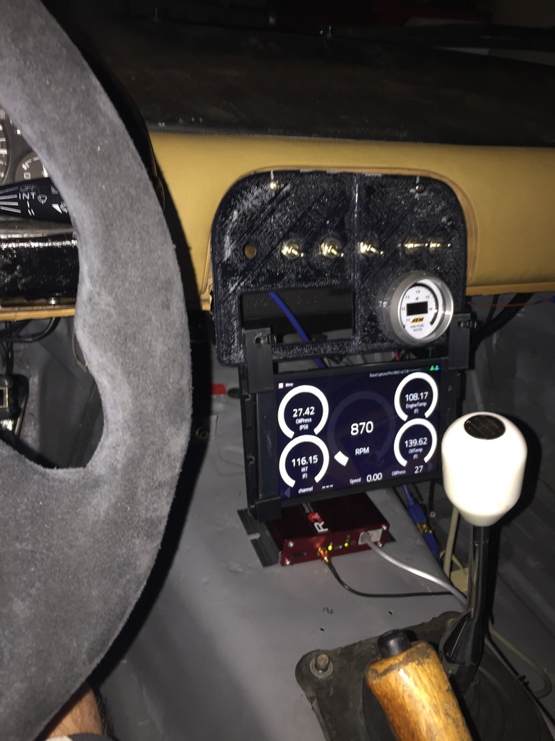 <p>So the new 1.8 has been in and running for a little while now. It seemed to be blowing some smoke early on but that seemed to be mostly gone now. Compression tested a perfect 180 PSI across the board so I have high hopes for this engine. </p><p>I upgraded the old DIYPNP to an older REV MS3 basic unit to get the datlogging and Knock sensor input functionality. The basemap seemed to be a pretty good starting point. I did one session of dyno tuning but was only able to mess with the fueling. It was my first time operating a dyno and I was just trying to get familiar with the contols and multitasking all the little things you need to watch over while tunning. I'll post up a dyno once I get the spark tables tuned. </p><p>Other than that I made this ghetto rigged cold air box out of some scrap sheet metal and a random scrap boost tube that was laying around the shop over a couple lunch breaks. Filter was a freebie sample and I 3D printed a 4" to 3" reducer piece with an bung for the IAT. I plan to just remove the driver side turn signal indicator while at the track as the air inlet source. </p><p><img src="http://cimg3.ibsrv.net/gimg/www.miataturbo.net-vbulletin/800x600/80-img_7772_f6c6e33c24312e8dd2aa38234be594443db51ac2. jpg" title="" /><br /><br /><img src="https://cimg4.ibsrv.net/gimg/www.miataturbo.net-vbulletin/800x600/80-img_7775_e6208ee46e38267306206bc8bf4ff2a978b34cac. jpg" title="" /><br /><br /> </p><p> </p><p>I also finally got the racecapture talking to the MS3. I can't praise this data logger enough. Custom code scripting is an amazing feature. The new Dashboard Broadcaster feature on the latest MS3 firmware makes setting this up a breeze. I now have the following ECU inputs logged and synced with my other data. Also I can set custom warning to display on the tablet for any parameter.</p><p> </p><p><strong>VIDEO:</strong><u><strong> https://www.youtube.com/watch?v=7a2YXBh8mG0&feature=youtu.be</strong></u></p><p>How the hell do we embed this now?</p><p> </p><p><strong>Channels Logged from the ECU:</strong><br />MAP<br />RPM<br />Coolant temp<br />TPS<br />IAT<br />Spark Advance<br />AFR Tagret<br />AFR<br />EGO correction<br />Knock Retard</p><p><strong>Channels logged via analog input:</strong><br />Brake Pressure<br />Oil Pressure<br />Coolant Pressure <br />Oil Temp</p><p><strong>Channels planned on adding:</strong></p><p>Steering angle</p><p>12 IR tire temp array via CAN bus</p><p><br /><img src="http://cimg1.ibsrv.net/gimg/www.miataturbo.net-vbulletin/800x600/80-img_7720_2909ee45be48215914c69f1dd9dbcda9395eb3be. jpg" title="" /><br /><br /><br /> </p>