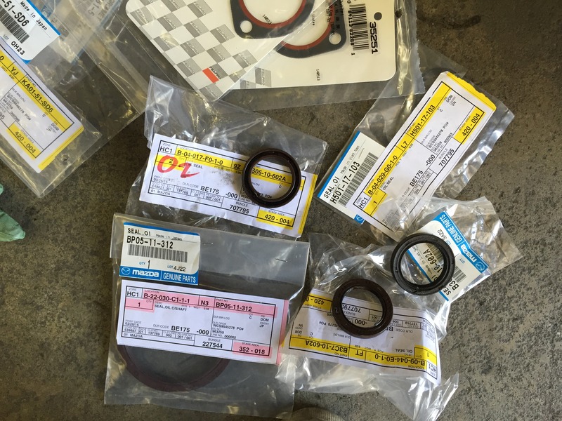 Spent the last few weeks preparing the 1.8L to drop in my car. The engine was covered in gunk and I couldn't tell exactly what was leaking so I decided to just replace all the seals while I had it out. This was my first time using the mazdamotorsports discount which was very helpful. I threw in a gates water pump (3D cast impeller) and timing belt kit too while I was at it.