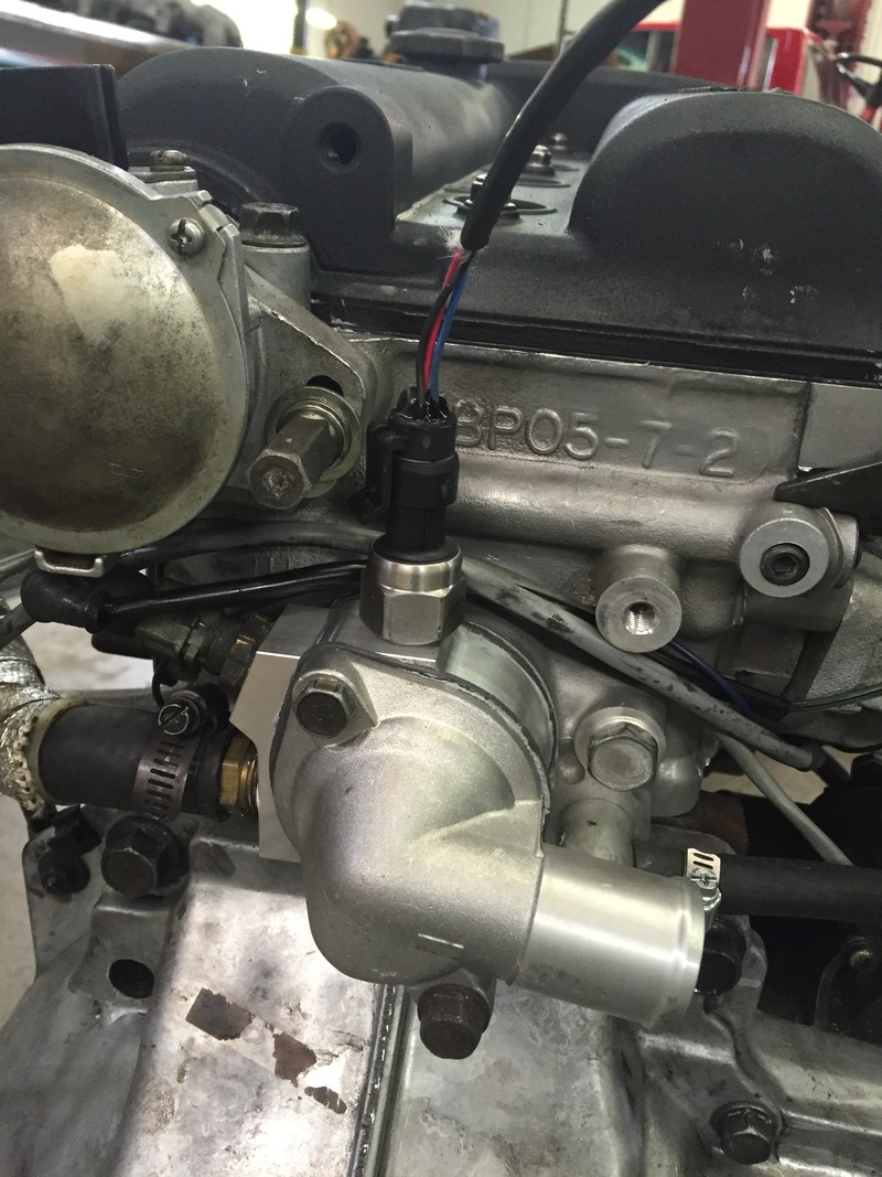 Thermocouple added to an oil plug adapter for some oil temp logging and warning system.