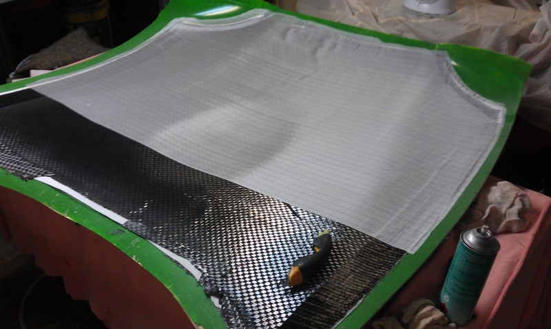 It is a plastic open/void roll that allows a lot of spec for the resin to run. Without it the resin would slow down and stop before the part infused. You can use that spiral hose protecter stuff for hydraulic hoses, etc. The doors weigh 3.8lbs. Trunk is 2.8lbs. Hood will be about 6-7lbs.