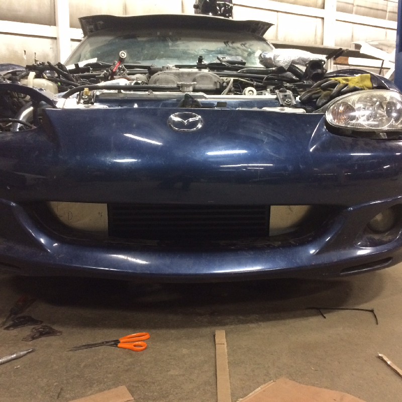 I will post more pics tomorrow but here is a quick look of where it is at from the front. Once I sign off on the design the visible parts will be painted semi-gloss black like the intercooler.