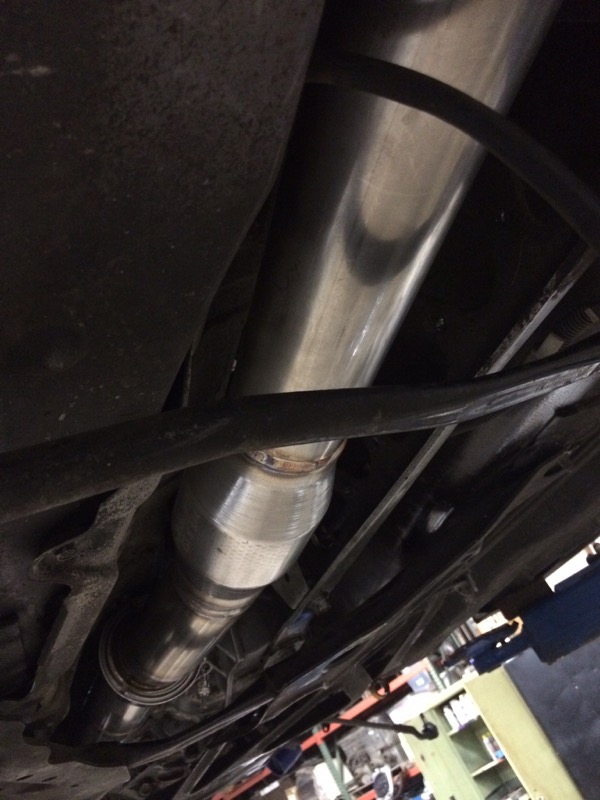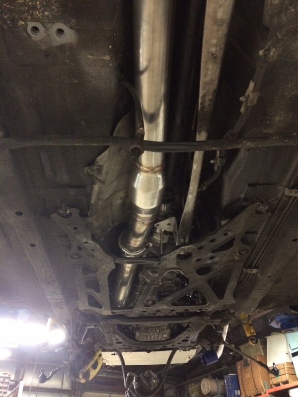 Next are some pics of the exhaust as it is as I left today. They are still working on mating the muffler to the mid pipe. I will include that picture on the next post. All exhaust is 304 stainless. Muffler is the big 3" magnaflow (p/n 12578?).