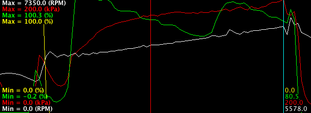 What I see here is a bunch of cascading outcomes from the bad(?) decision to run such a big turbo. I picked this turbo because it had more head room for future development but it seems that it is doing TOO good of a job.