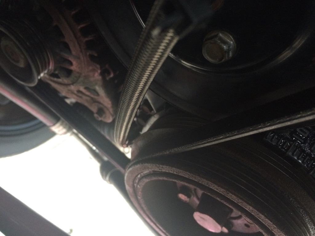 Hmm. "breakout block" seems to be nice and dry. Where the oil seems to be is on the braided part of the line on the bottom of the block if anything. But then, pretty much the entire bottom of the block was dripping.