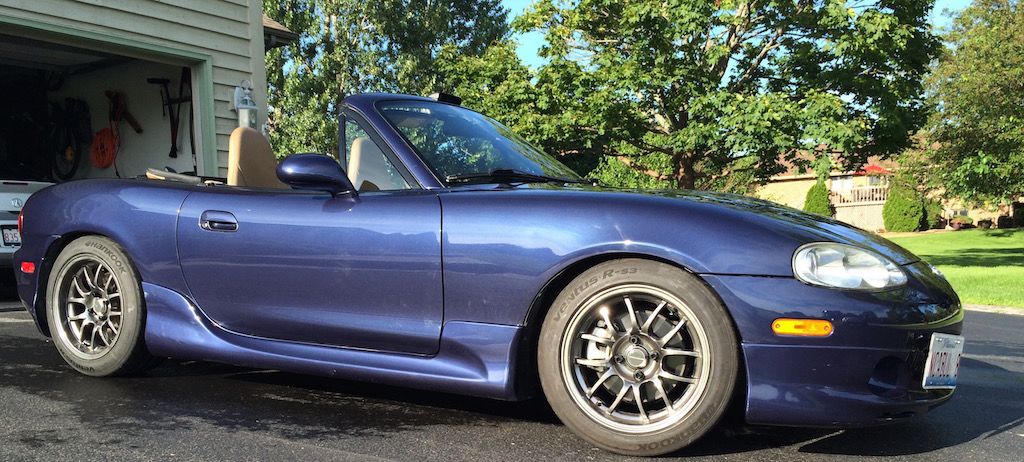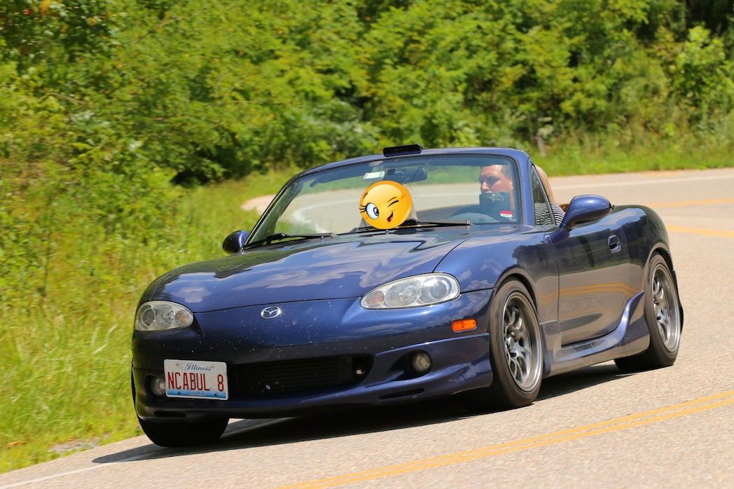 Had a frustrating weekend but mainly due to the heat and humidity. A couple months ago I ordered Hawk HPS pads and fresh rotors to do a brake job. I was getting low on material in the rear so I decided to do the brakes before my "Miatas at the Gap" trip. I took off the rear brakes and realized that the wrong pads were ordered and nobody had any pads in stock of any type so I had to find some used pads that had more material on them.