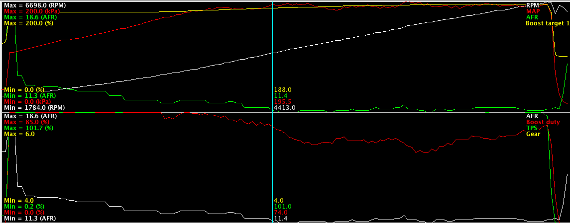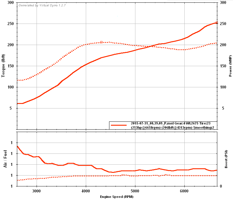 I did a pull on the way to work this morning to see where I was at. I am pretty happy with the torque and HP numbers but I am going to work with my boost control to raise that dip at 6,000rpm up a tiny bit, and then I need to get to an actual dyno to check my calibrations against a known quantity.