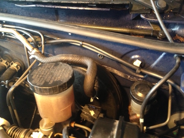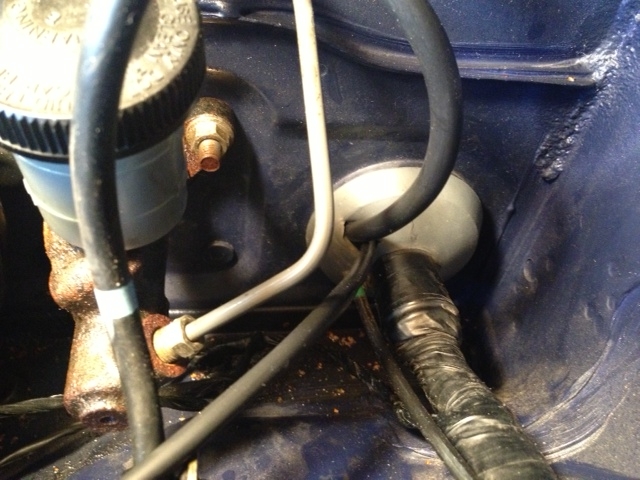 I spent about ten hours on Tuesday working on my project. I chose to route the vacuum line and the wideband wires through the existing rubber grommet that the stock harness runs through. I really felt bad cutting into that boot, but I feel it went pretty good. Without making my own hole, I don't think I could have done it better. I tucked the vacuum line under the hard lines and used zip ties to keep it all nice and neat.