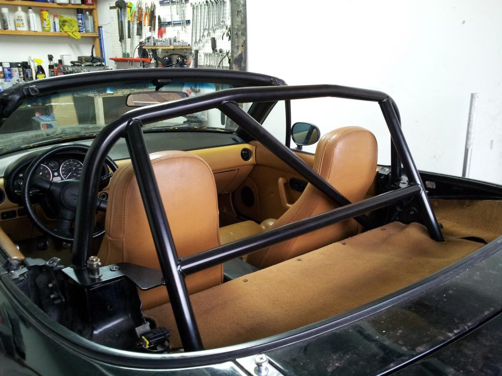 Decided to finally throw in my EGR roll cage too. Fitment was alright. Had to grind out LH seat belt tower hole to get it lined up laterally but it worked out ok in the end: