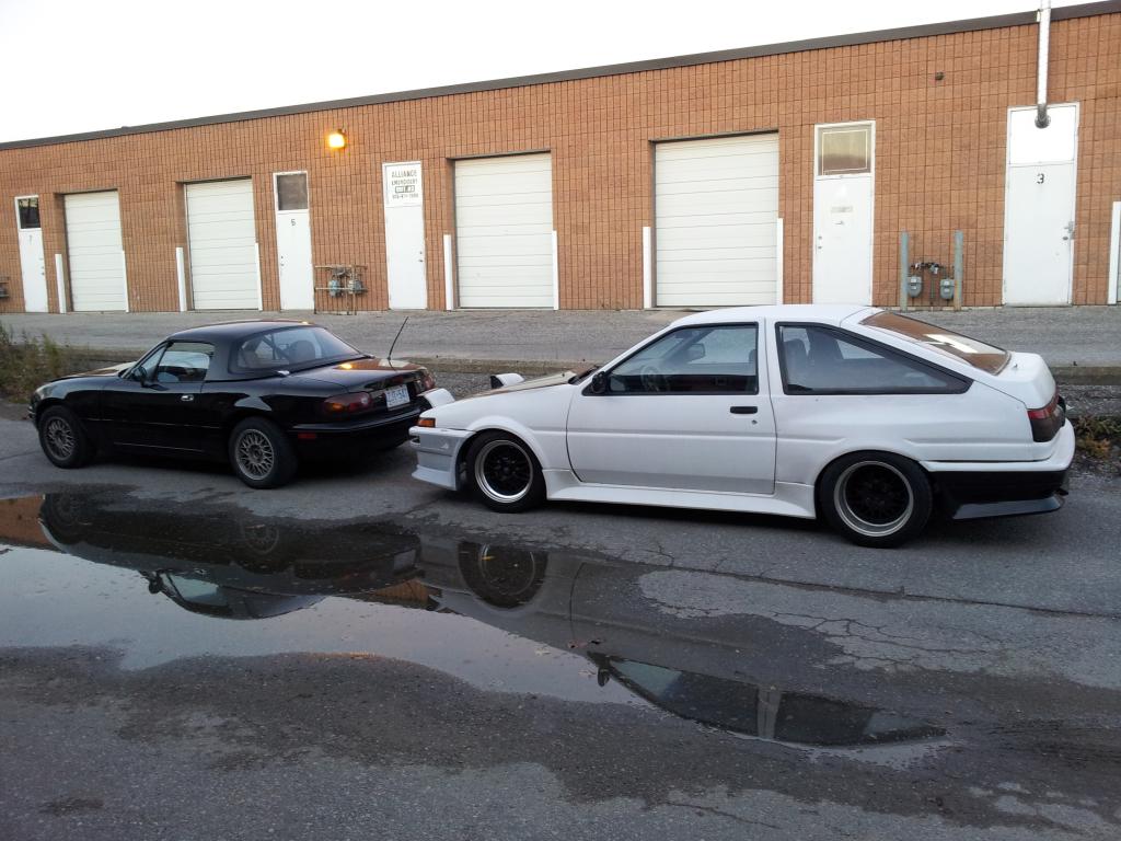 Cruised out of town to swap hoods with some farmer that was hoarding FC's and Miatas. Met up with my buddy to chill at another friend's shop for a bit: