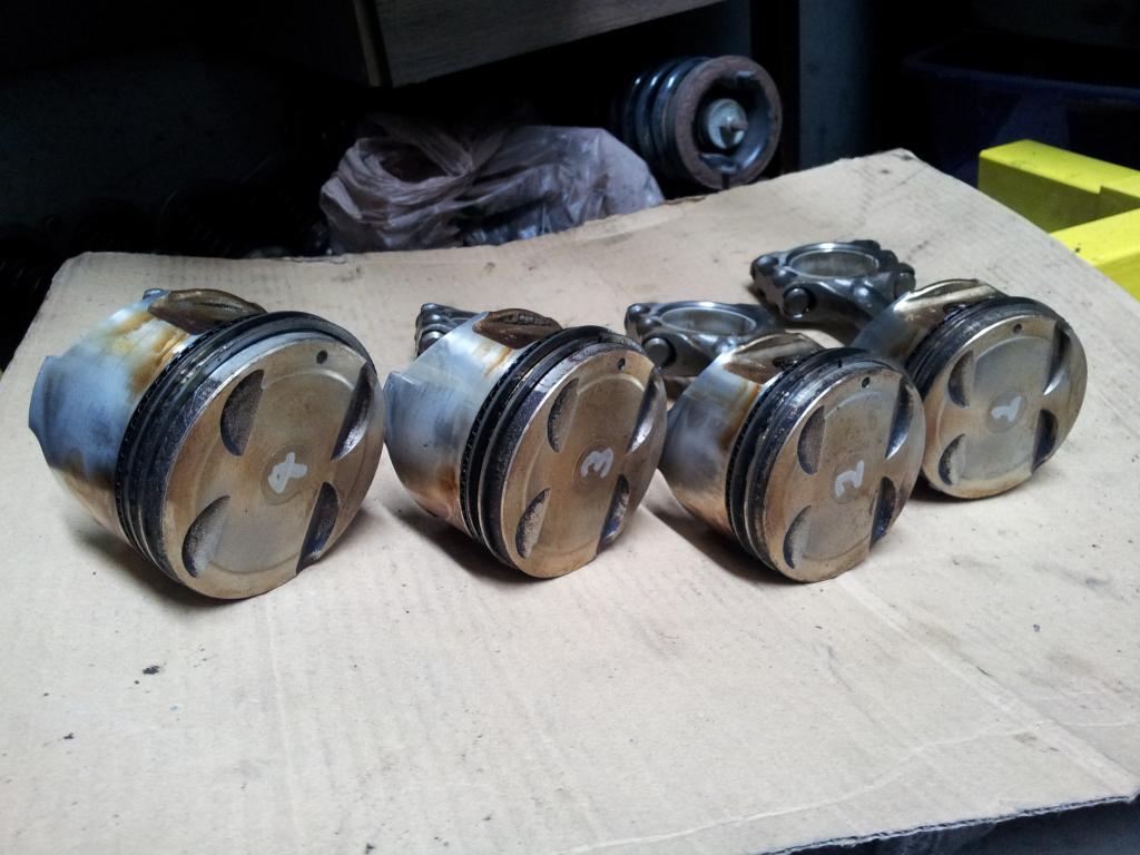Pistons and bores all seem pretty consistent and can't see anything abnormal. The shop I dropped it off at noted that the motor appeared to be very low mileage so that was good to hear: