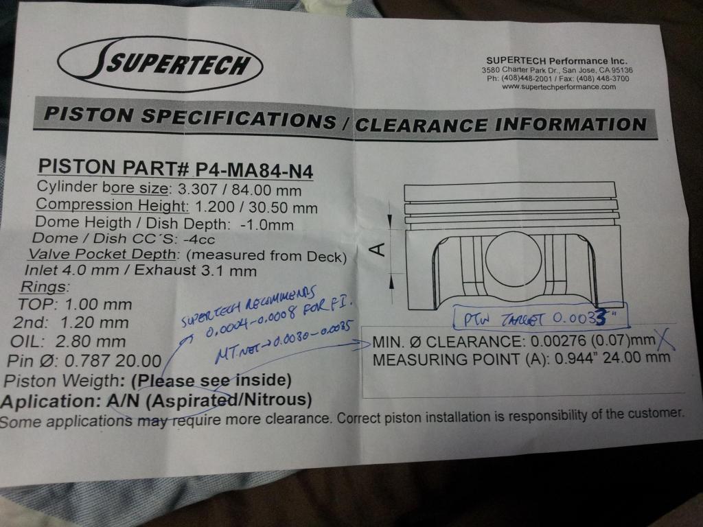 - Supertech 84mm / 8.6:1 pistons and rings (0.0033 ptw clearance)