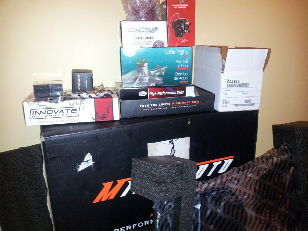 Cooling- Mishimoto dual row rad, fans, t-stat