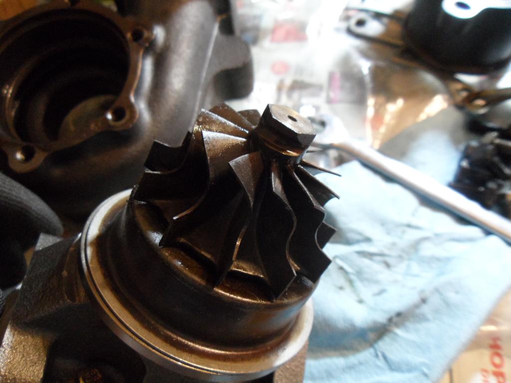 I forgot to mention this for the churbo. Check this out. FWIW, noticed there were 3 mounting holes that weren't blind on comp housing. Went right through into the housing wtf? NBD but guess I'll just throw a layer of teflon tape and bolt her back up. Is this normal for name brand turbos too?