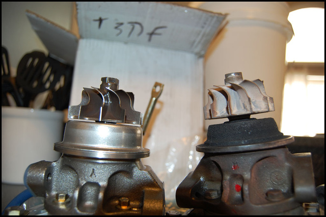 Inducer blades are visibly longer than the garrett's.The turbine wheel is different. The inducer is like 18mm taller in diameter.