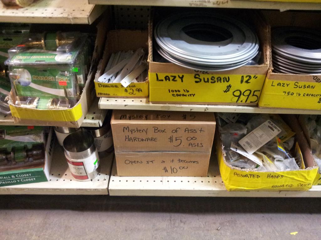 Onto the rods. Shopped around a surplus store to try and make my own balancer. Came across this mystery box. Shook it around and feels about 1/4 full. Too cheap to find out what it is really. It's in a section surrounded by door hinges, bearings, brackets, etc. I have a feeling I'd end up with a box of house related items which would be of no value: