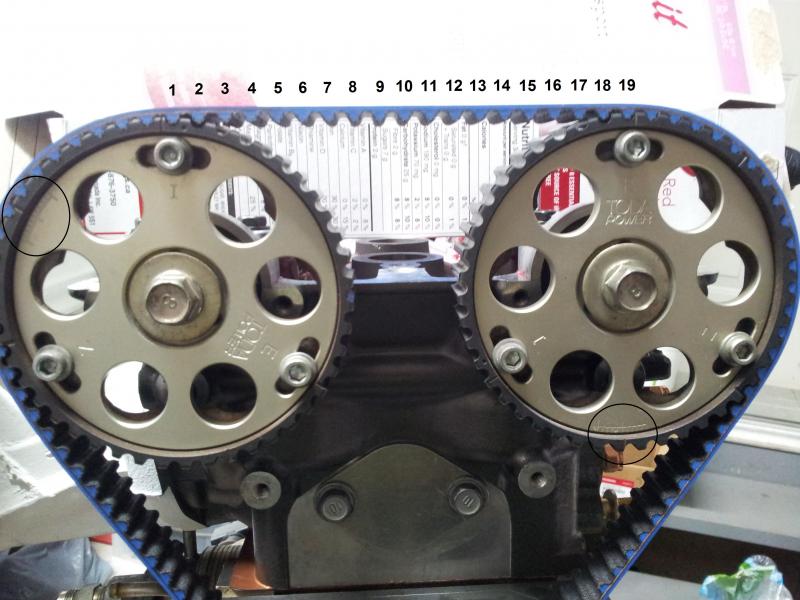- Cam gear marks centered (circled areas) -> check (exhaust side may look off but it's just perspective)