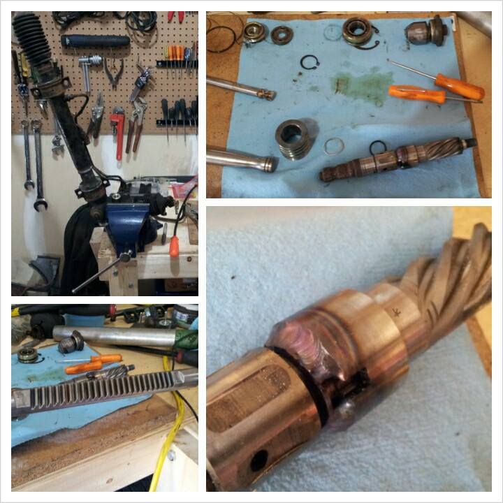 With the motor out, took advantage and disassembled rack to weld up the pinion since I'm depowering (first job to break in the vice. Man that vice has been so key):