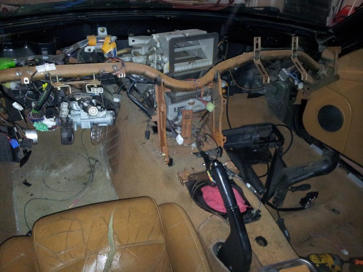 So yeah I decided to remove heater core since the hoses were coming way too close to 4th exh collector and the dump tube. Was supposed to be a winter project to work on the interior but after feeding in some wiring and MAP line, next thing I know, the whole IP skin's apart lol: