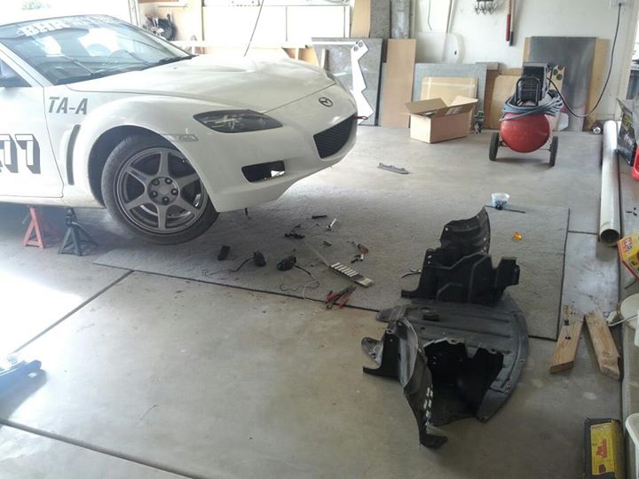 I then sold the hideous red wheels that weighed 23508972385907 pounds, and got some stockers off of an Evo 8 that actually fit pretty decent. 17x8 +38 and even the hub bore matched the RX-8. Good wheels for daily driving and going to from the track.