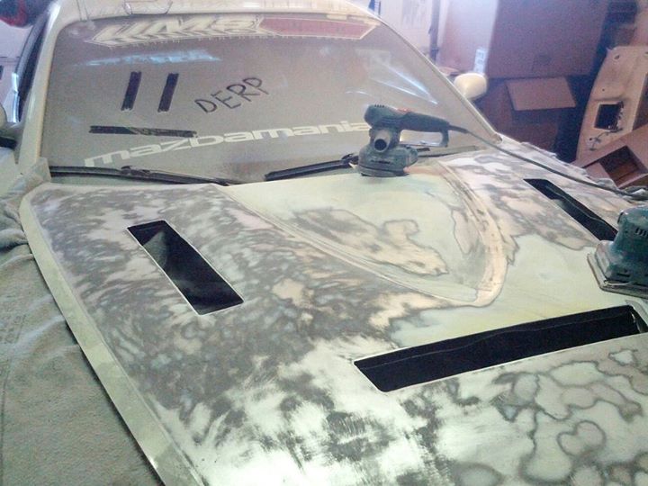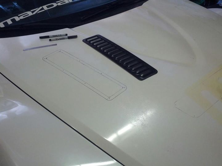 It was smoldering hot outside and I was seeing super high temps on track. Coolant was always 235+ and oil was 250+. I decided some hood vents could help and was not afraid of cutting up my stock hood since the paint was in terrible shape. The clear was flaking off and the color had started yellowing, I suspect the car had some sort of minor damage to the hood and the previous owner bought a new one and had it sprayed on the cheap since there are no accidents on the cars record.