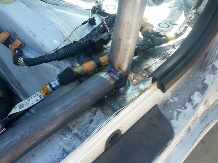Just bolted into place for now. I'm going to reinforce that trunk area with some aluminum diamond plate I have sitting around so it will be much stronger. I am also going to secure the upright to that vertical metal panel you see in the picture, and possibly a forward tie that goes to the cage.