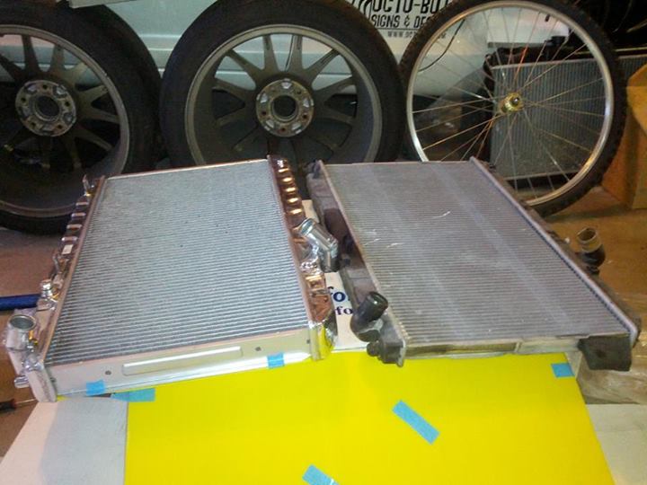 CSF Radiator vs. Stock. Almost twice the thickness. Dual row single pass.
