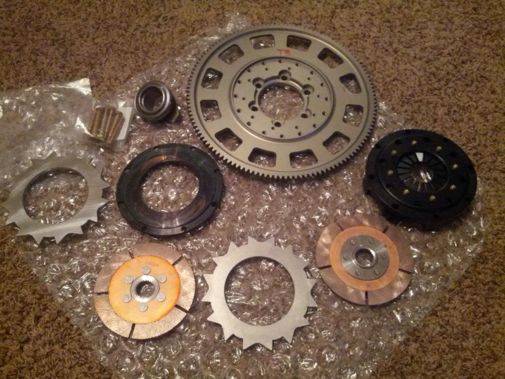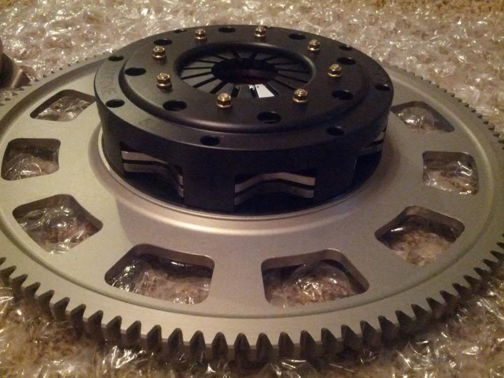 Flywheel and assorted hardware as well as the clutch unstacked. Entire clutch and flywheel assembly together is 10.35lbs.
