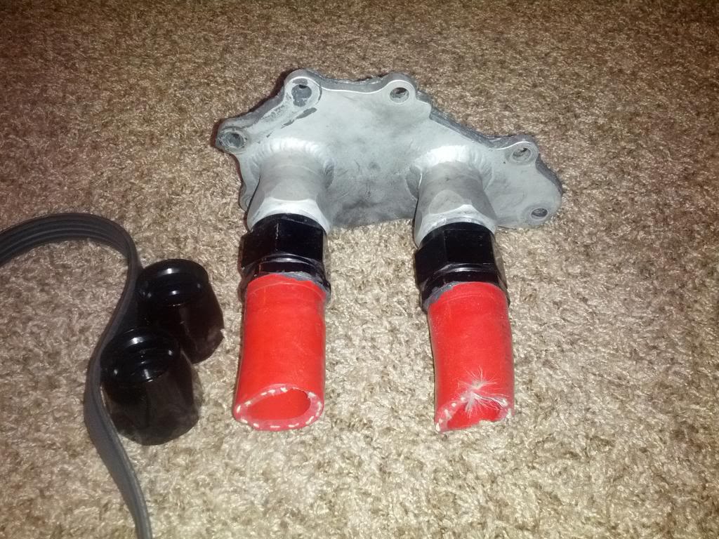 I got the electric water pump plate that I bought from a fellow 8Club member (VICEdOUT) and there was even something extra in the box! I've never gotten bonus parts gifted to me before LOL! It was a set of stock fuel rails that have been modified to use an external regulator and -06 AN fittings. Might be able to put it to good use, we'll see later on down the road.