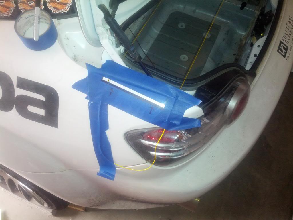 The big ****. Most of the mount will be inside the car, it bolts directly to the chassis inside the trunk area. It will go through the rear quarter panels.