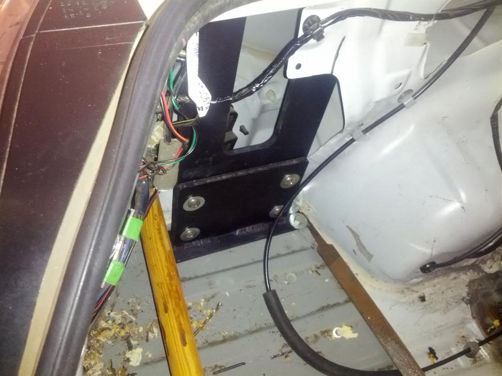 Just bolted into place for now. I'm going to reinforce that trunk area with some aluminum diamond plate I have sitting around so it will be much stronger. I am also going to secure the upright to that vertical metal panel you see in the picture, and possibly a forward tie that goes to the cage.