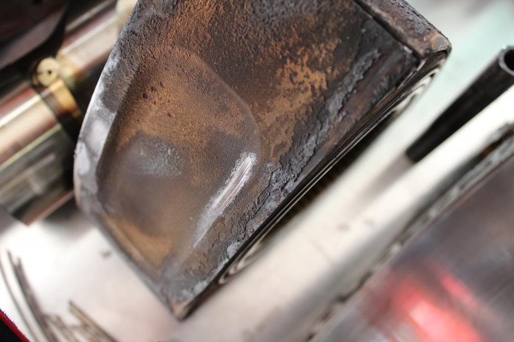 Found that most of the exhaust ports were just PACKED with crud, was probably why it didn't make good power up top, it couldn't breath. Also there was a TON of carbon build up. I used seafoam on this car probably about 4 times and after seeing this, I'm pretty sure it didn't do a whole lot at all... I'm lucky that it didn't chunk off and destroy the housings and irons.