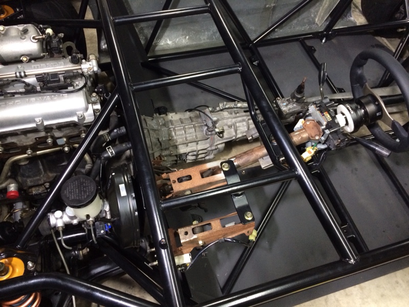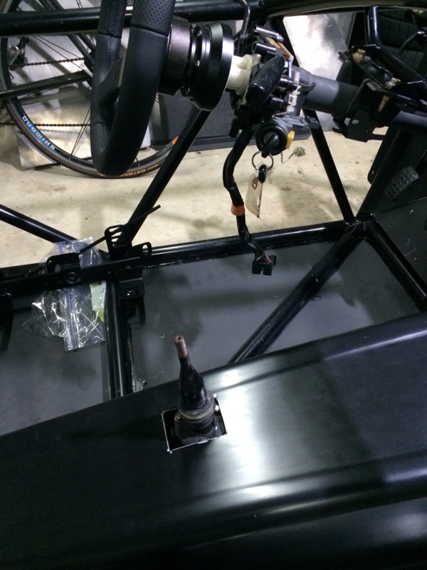 Installing the steering column and the pedal assembly was a pretty straight forward process. However, after installing it, I decided to remove it and paint it black. The rust color just wasn’t workin for me against the clean black powder coated frame (even though it would eventually be hidden).