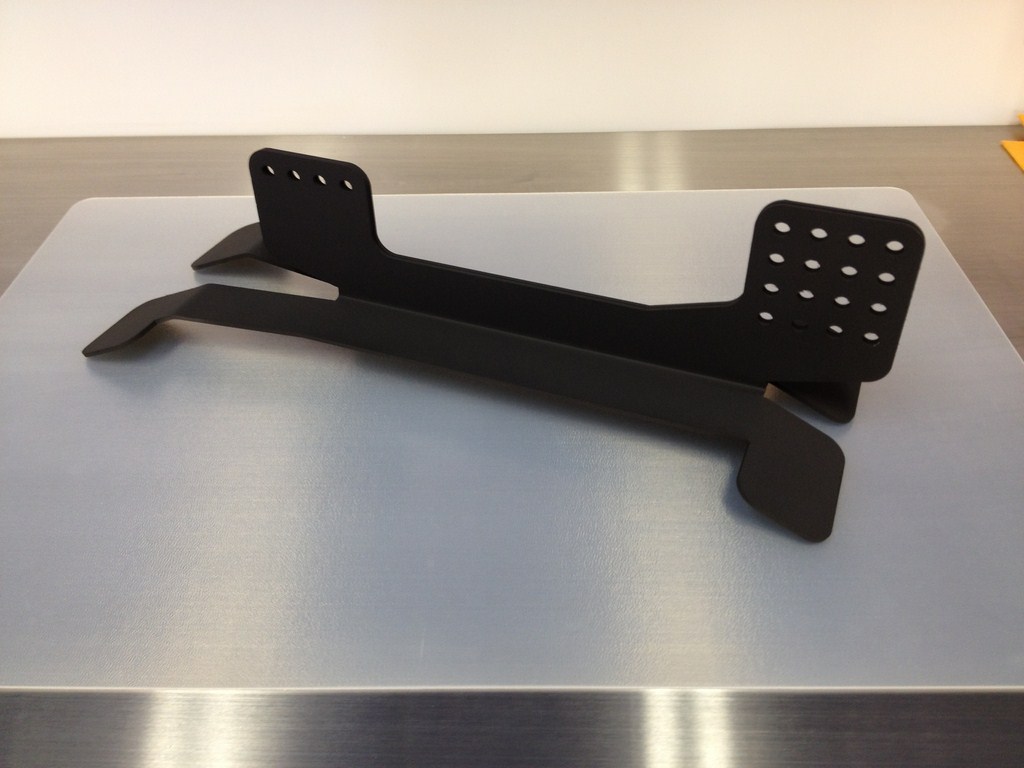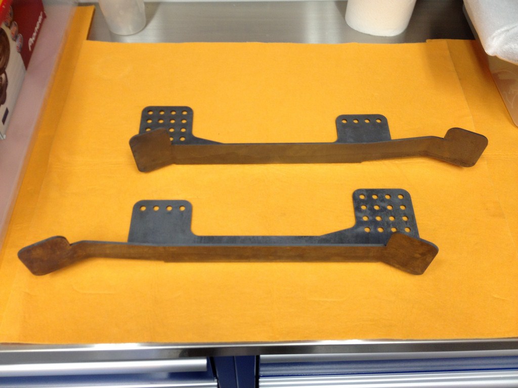 Aside from plastic parts, we're playing with steel too. I found the half-size pattern for this seat bracket online somewhere on the forums--sorry for the lack of attribution. It was re-drawn and water jet cut from some scrap steel that was laying around. Hope they work.