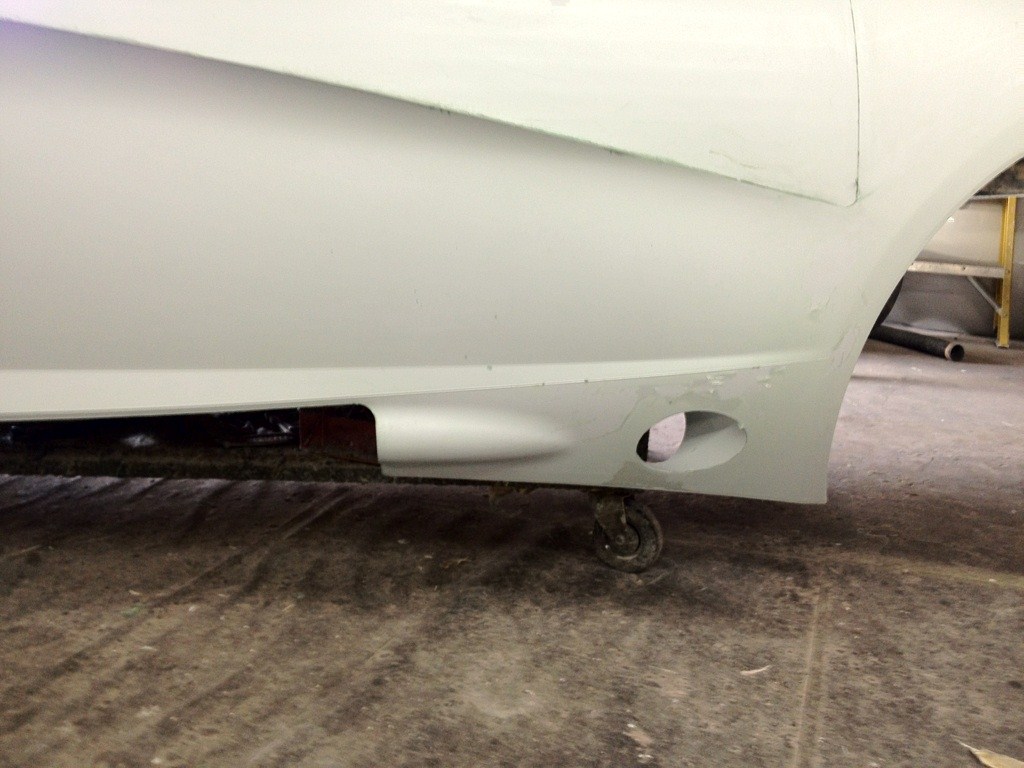 The side panels were finally liberated from the molds! I'm not going to show them off until they're completely on the car. Until then, included is a tease of the exhaust cutout.