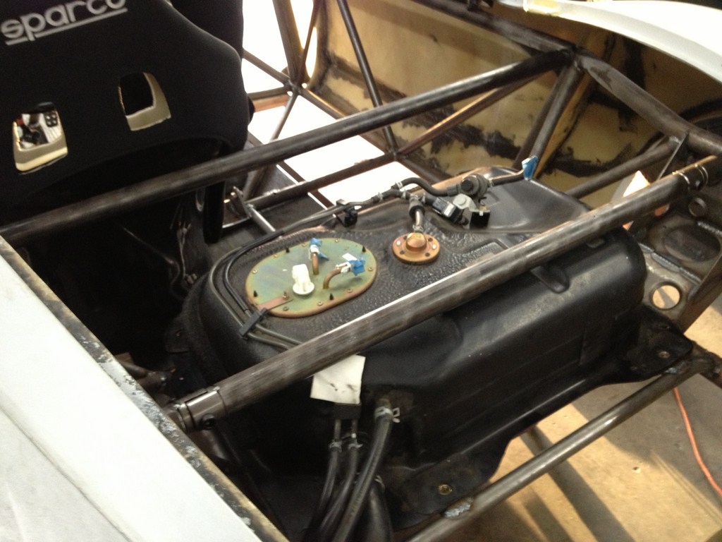 --The rear cross bar at the shock tower. This is for safety so the gas tank doesn't move in a crash, and for ultimate stiffness between the rear shock towers.