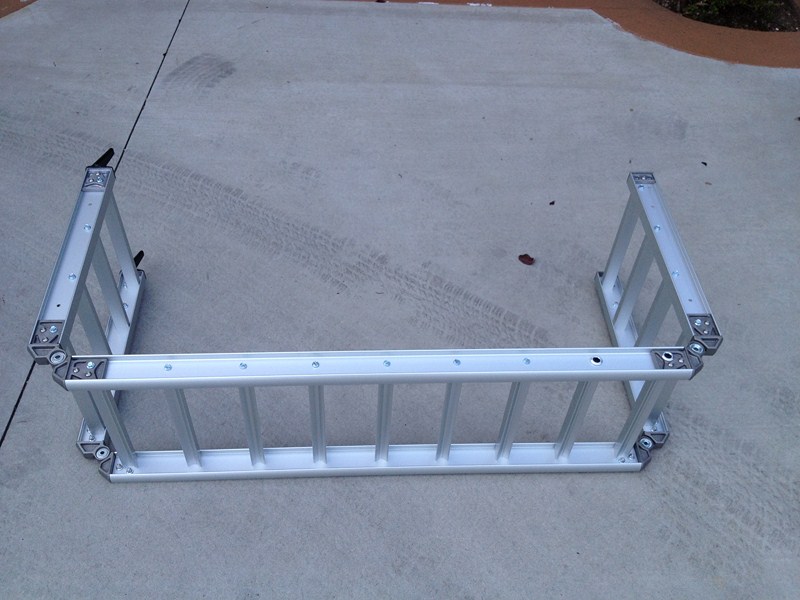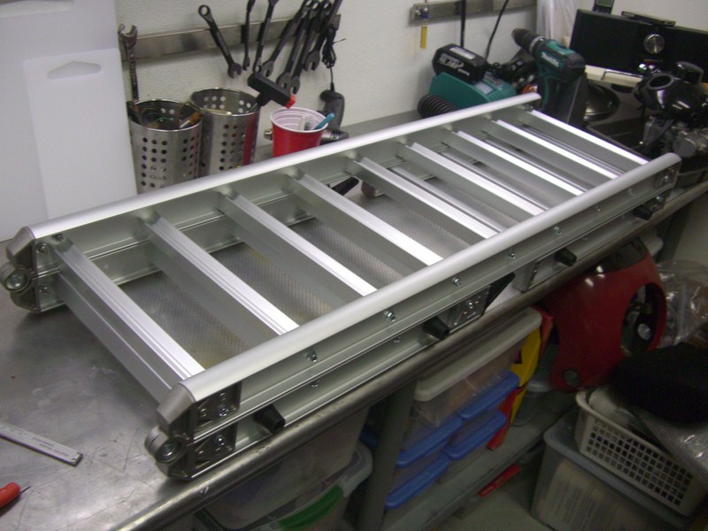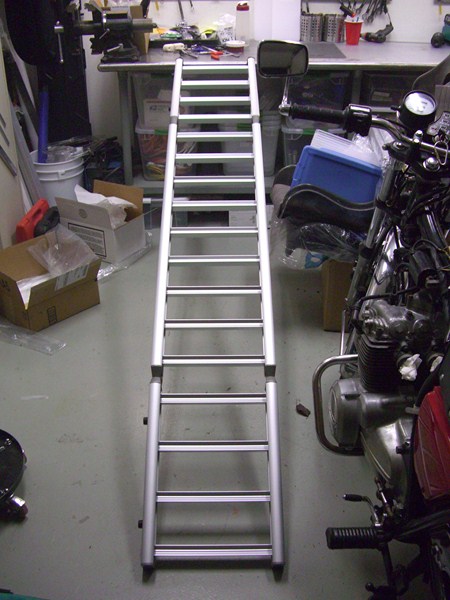 This is the new ramp design we've just finished. The two biggest new features are that is customer-assembled--in other words, it ships in a 3" x 9" x 44" box, and you can customize it to match your bike or truck (paint, etc.) before assembly. If a part breaks, it can also simply be replaced.