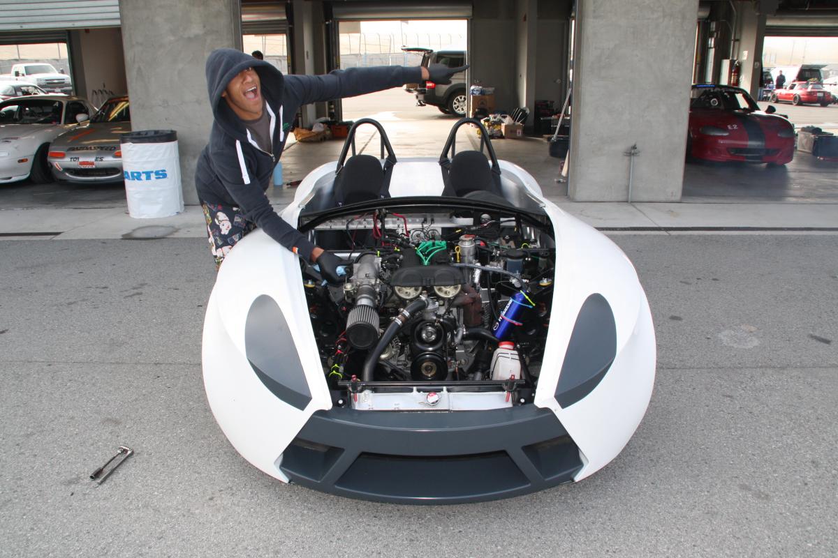 The first Catfish with a body is a great car, and it keeps on giving! We're stripping it in order to update some parts for the Miatas at Mazda Raceway event, and for further customization later.