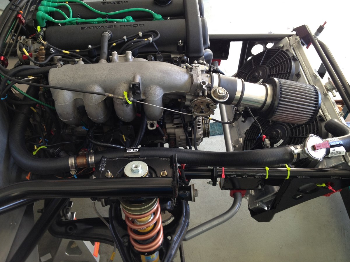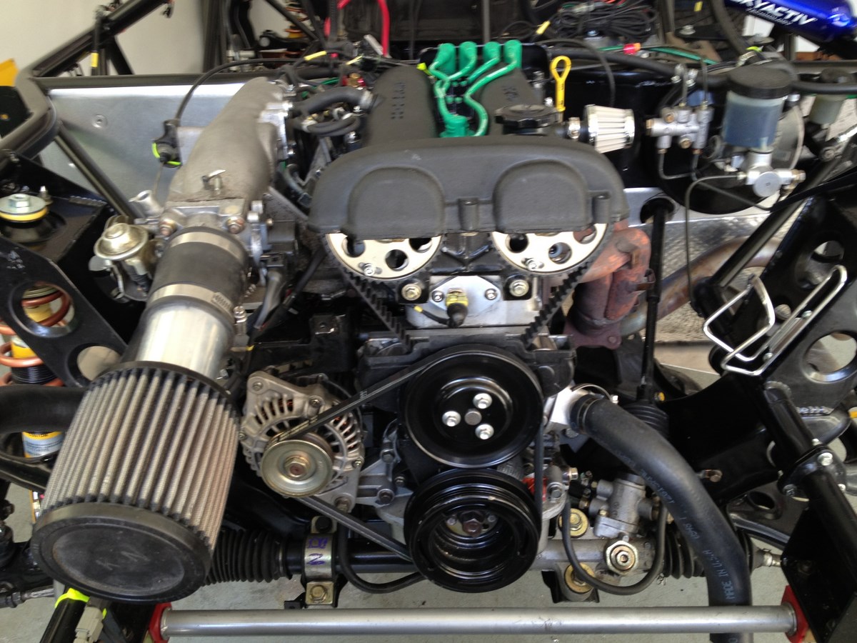The Catfish frame is actually going through some fairly big pre-production changes that are intended to help packaging, simplicity of production and strength/safety. We're also working on getting a K-member digitized so it can be part of the drawing, so if you know of anyone who has already done this, let me know.The 1.6 we have in it now is just not a good turbo candidate; it's got a really high compression ratio, and simply needs to be developed more as a car we can take out to track days. A higher flow exhaust is on the list.