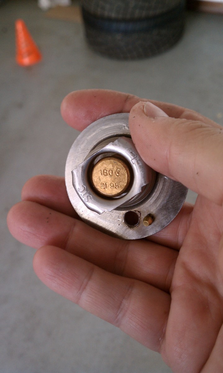 Just for reference, bypass valves use a wax that expands when heated to open the valve. 180 degrees is a good operating temperature for most engines IMO, and higher temperature-rated thermostats are probably around not for efficiency, but for emissions. My new placement will be prior to the bypass valve, as soon as I can find the proper hardware.