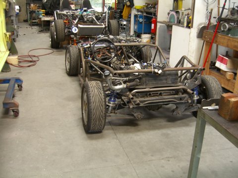 Thicker chromoly tubes can be welded without heat treating--as seen in all the off-road race trucks, but the cost vs. weight and stiffness ratio are hard to justify. The picture shows mule 1 & 2. Mule 2 has stock suspension on it, so it looks like it could handle rally car duty.
