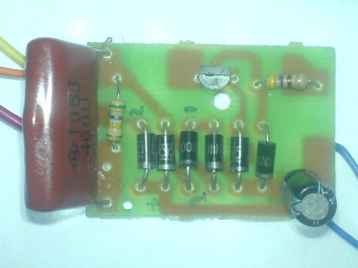 Close up of the custom microprocessor daughterboard. They are made to look like capacitors to fool you.