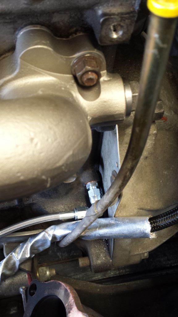 Tap in there and you have the best routing for your turbo water lines. Feed from the block and return after the thermostat to the KIA cover/upper hose.