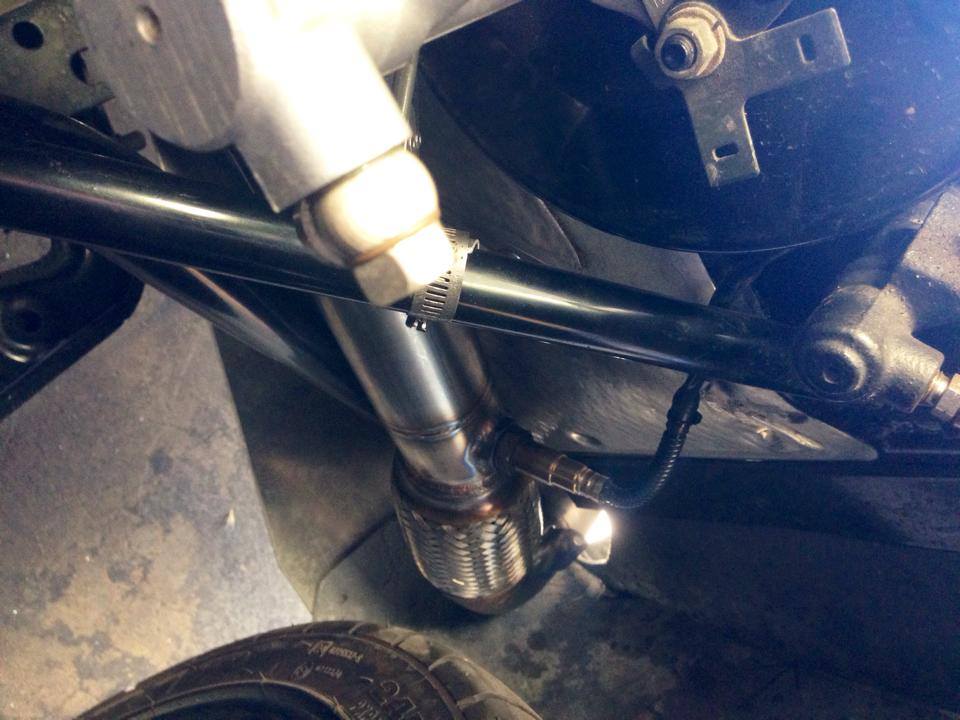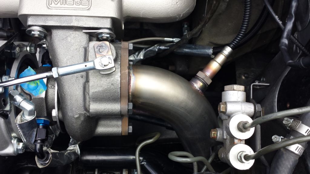 The wideband sensor was moved about 36" away from the turbo and situated so that moisture doesn't pool when it's not on.