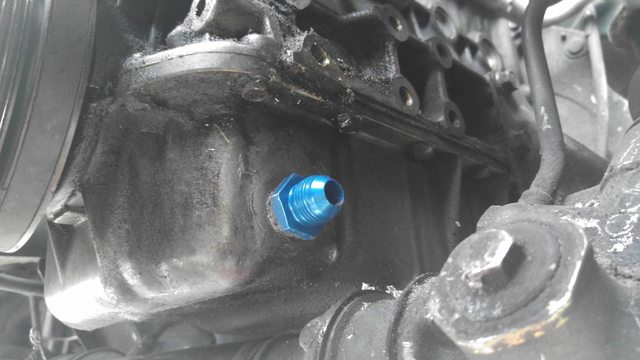 There was a problem. We drilled too big. Drilled 1/2, when the fitting I was given was 3/8. Thankfully we found one locally at a performance shop, crisis adverted.