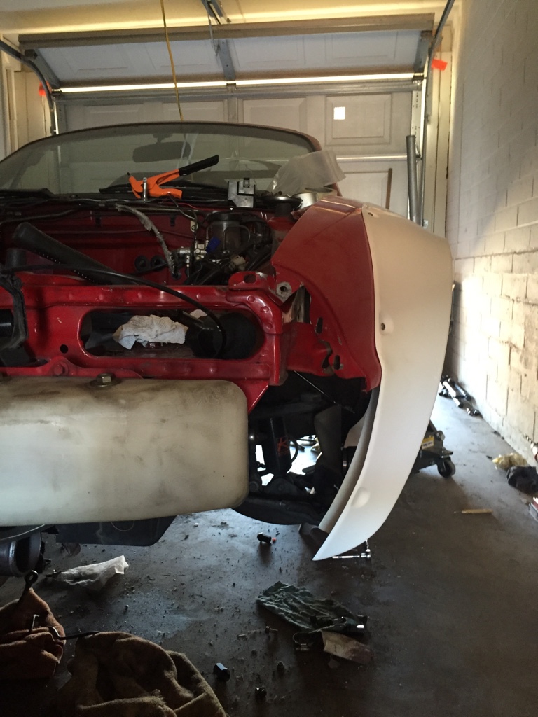 Then I put the front bumper on just to see how much I would need to trim off and it's a decent amount but it's kind of what I expected so I'll get to that soon.