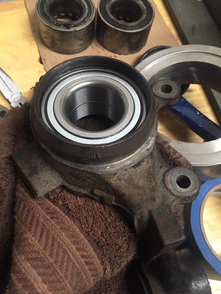 Got the old bearings pressed out and got the new ones pressed in with the new hubs.