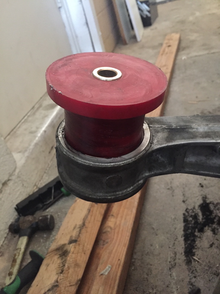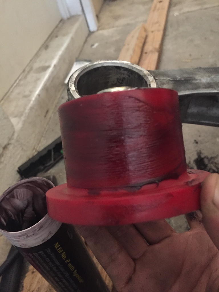 I hit the sides a bit so I cleaned that up and greased up the new bushings and greased the arm itself, and hit it a few times with a hammer.