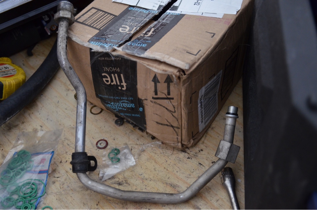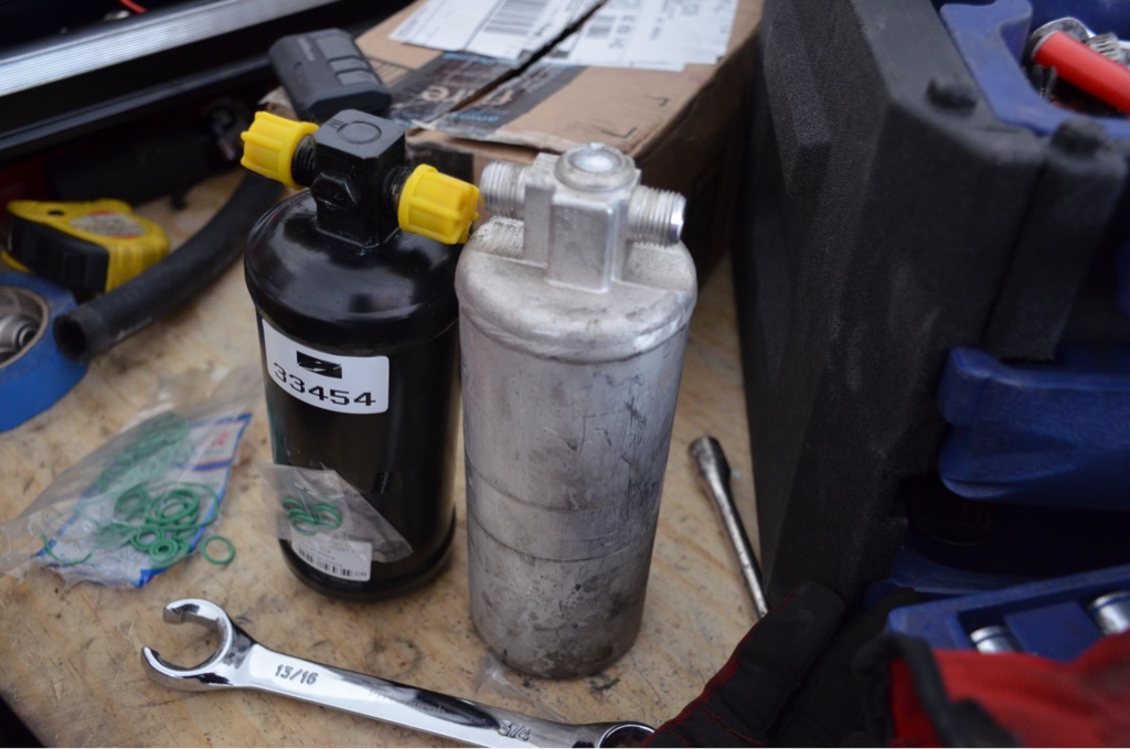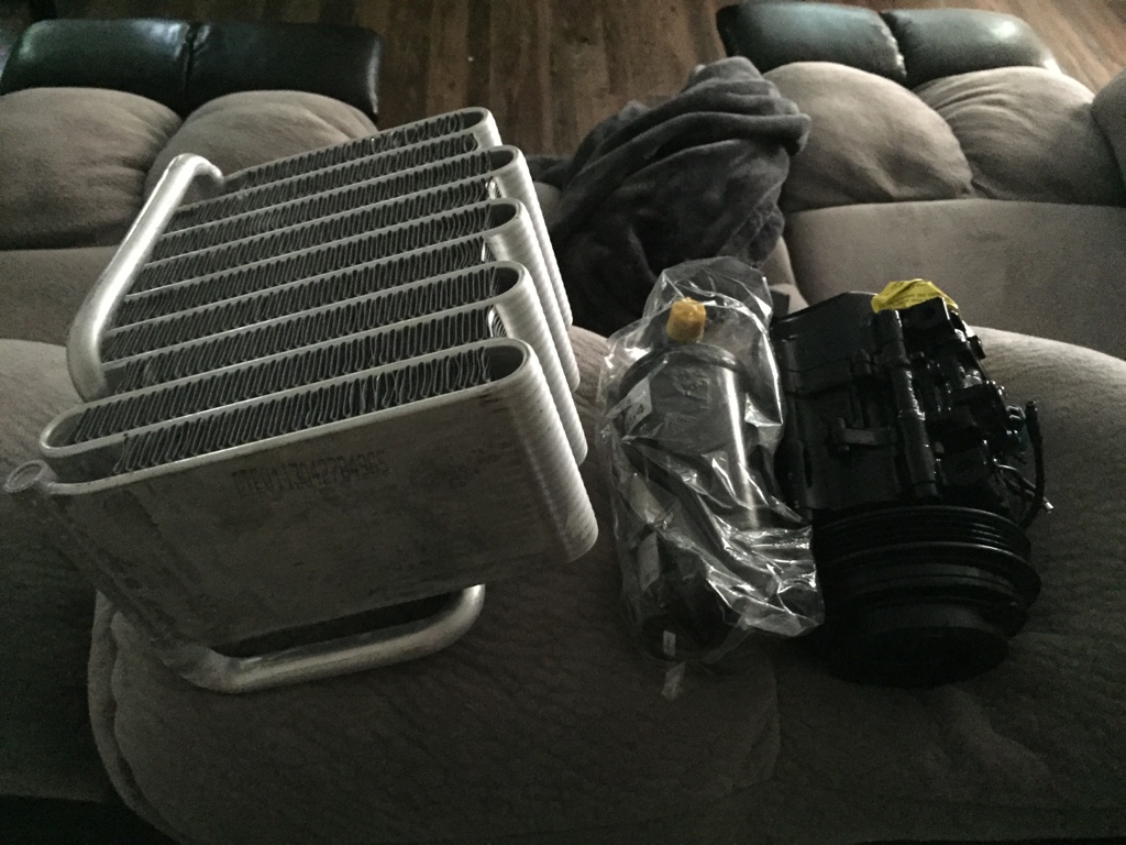So it feels like it has been a while since I touched the car.. So got some motivation today to get out there to start this AC job. Being in AZ I have never had a car with working AC this car I decided to change that. So I know now 91's had R12 in the system. I didn't when I first got it, so I just put r134 in the system... Well it worked for a while then right back to how it was. So recently I just said screw it lets make sure I don't have to mess with AC for a while. Got the components and went out to the garage and went to work.